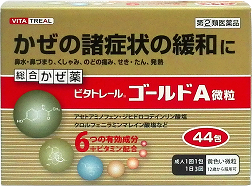 かぜの諸症状(発熱・鼻水・のどの痛み等)を緩和する総合かぜ薬(指定第2類医薬品)。