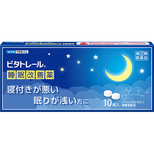 寝つきが悪い・眠りが浅い等の一時的な不眠症状の緩和に(指定第2類医薬品)。