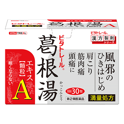かぜのひきはじめ、頭痛、肩こり・筋肉痛などに用いられる葛根湯のエキス顆粒。