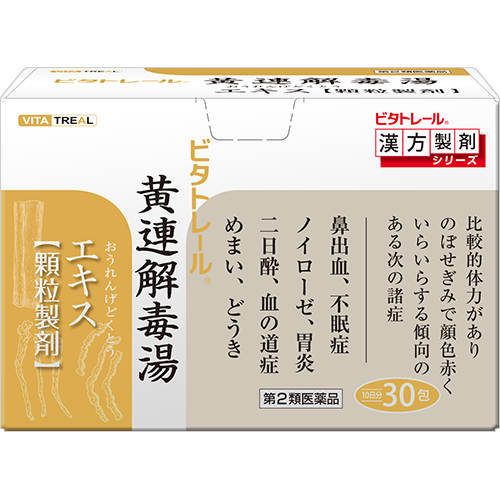 のぼせ気味でいらいらする傾向のある方の諸症に用いられる黄連解毒湯のエキス顆粒。