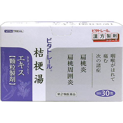咽喉のはれ・痛みに用いられる桔梗湯のエキス顆粒。