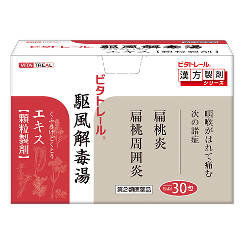 扁桃炎やのどの痛みに用いられる駆風解毒湯のエキス顆粒。