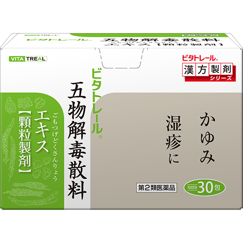 かゆみ・湿疹などの症状に用いられる五物解毒散のエキス顆粒。