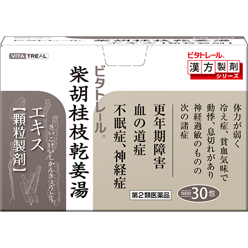 冷え症・貧血気味で動悸や神経過敏がある方の更年期障害などに用いられる漢方処方のエキス顆粒。
