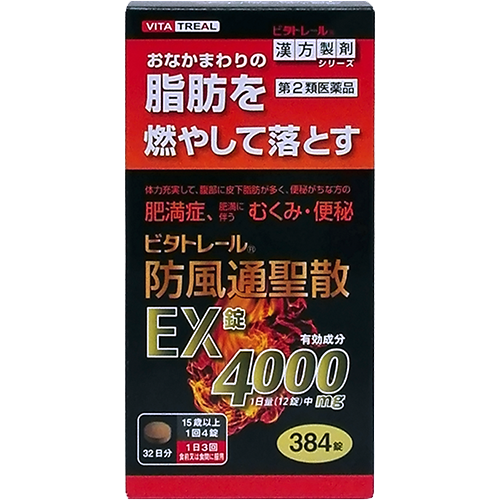 腹部に皮下脂肪が多く便秘がちな方の諸症に用いられる防風通聖散の錠剤。